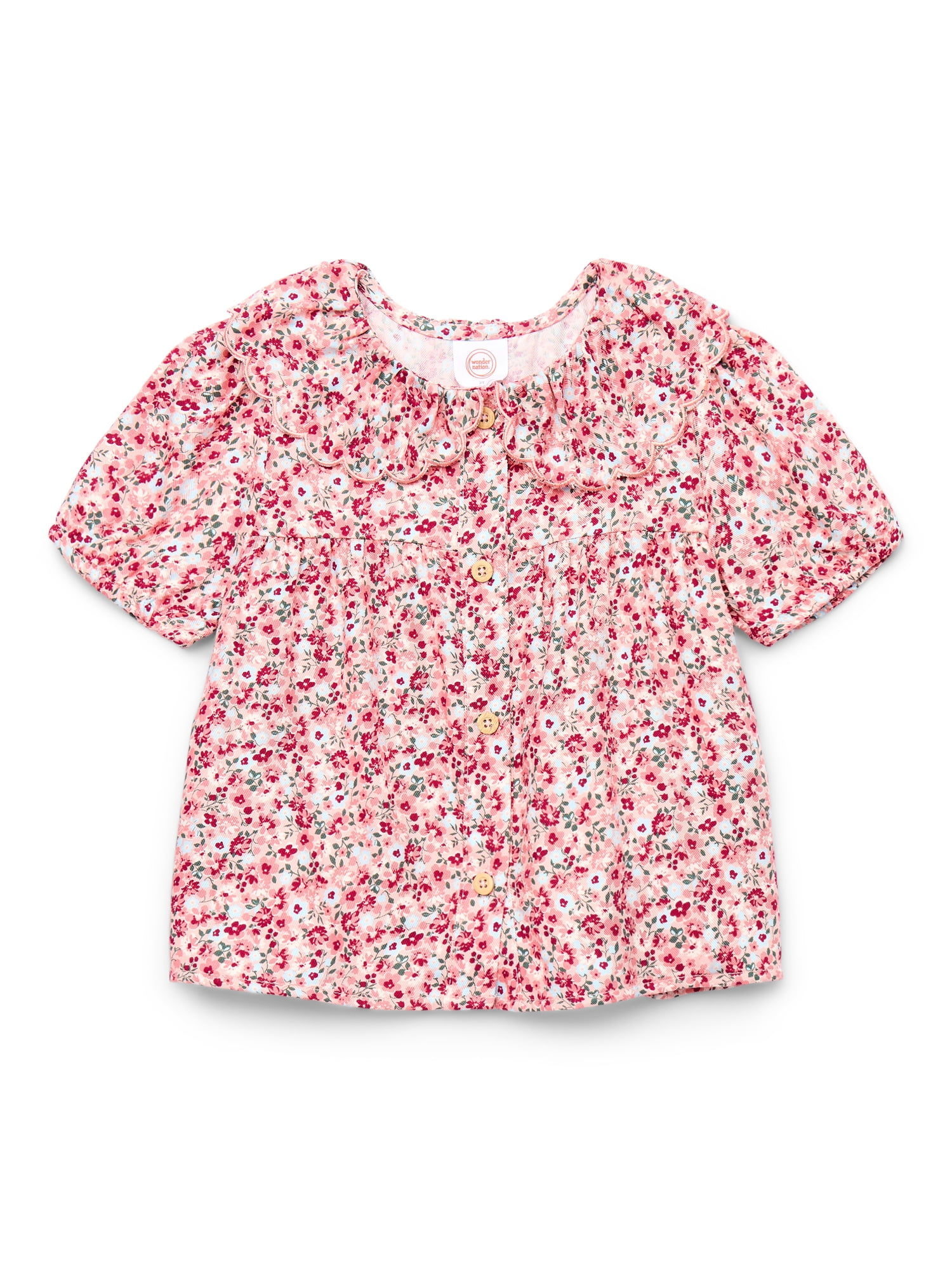 Wonder Nation Toddler Girls Puff Sleeve Top with Lace Trim Sizes 12M