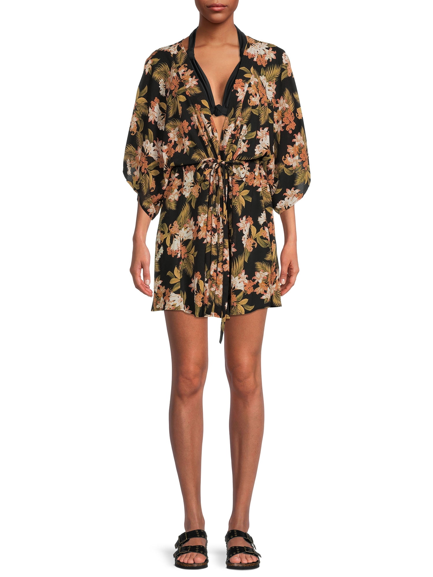 Time and Tru Women #39 s Tie Front Layering Top Luau Flowers L/XL