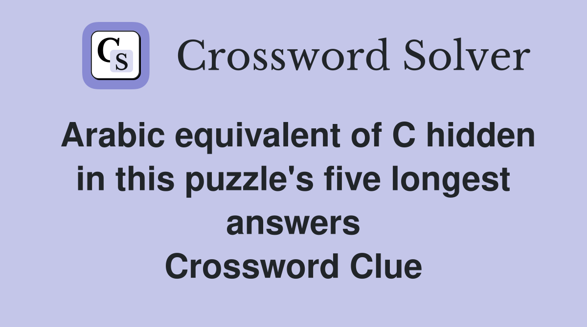 Arabic equivalent of C hidden in this puzzle #39 s five longest answers