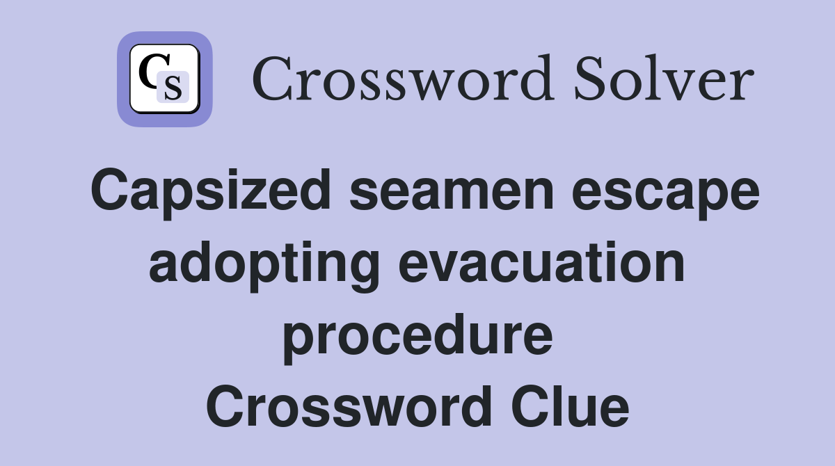 Capsized seamen escape adopting evacuation procedure Crossword Clue