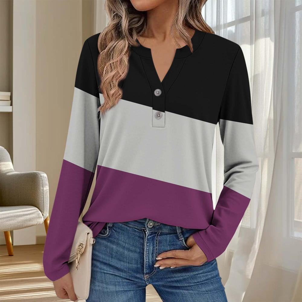 Bxsruta Tops for Women Women #39 s Printed V Neck Long Sleeve Blouse