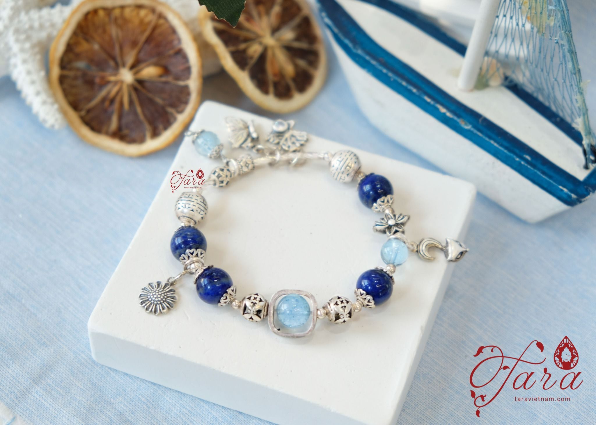 Vòng đá Topaz Lapis Lazuli và Ưu Linh Trắng TARA GEMS