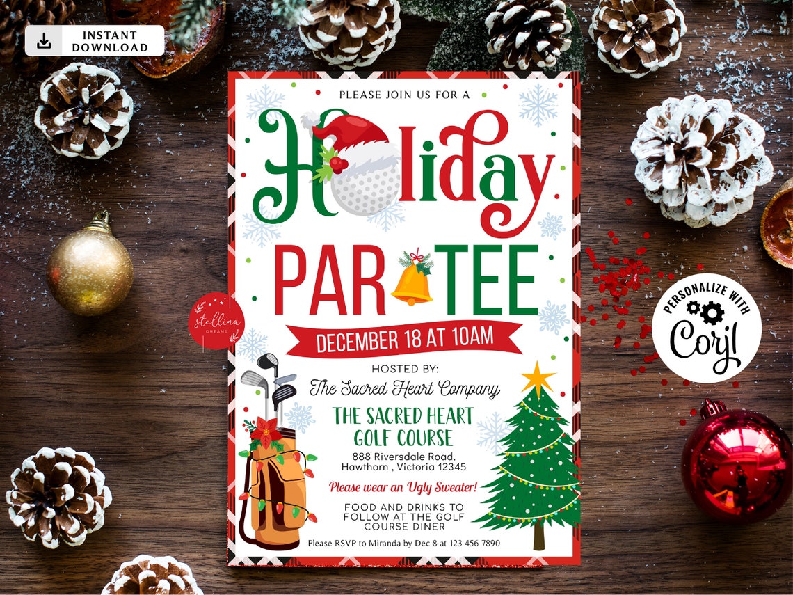 Editable Christmas Golf Party Invitation: Holiday XmasParty
