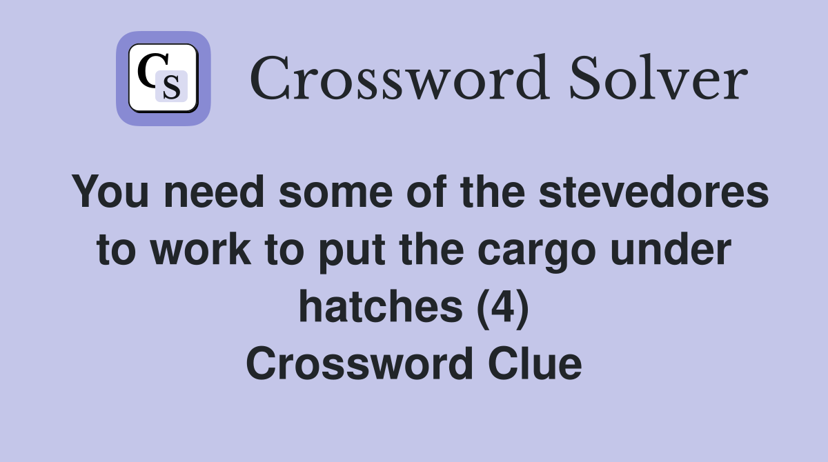 You need some of the stevedores to work to put the cargo under hatches
