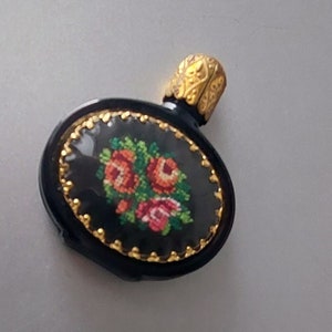 Vintage Petit Point Perfume Bottle 1950s gold Filigre Gem