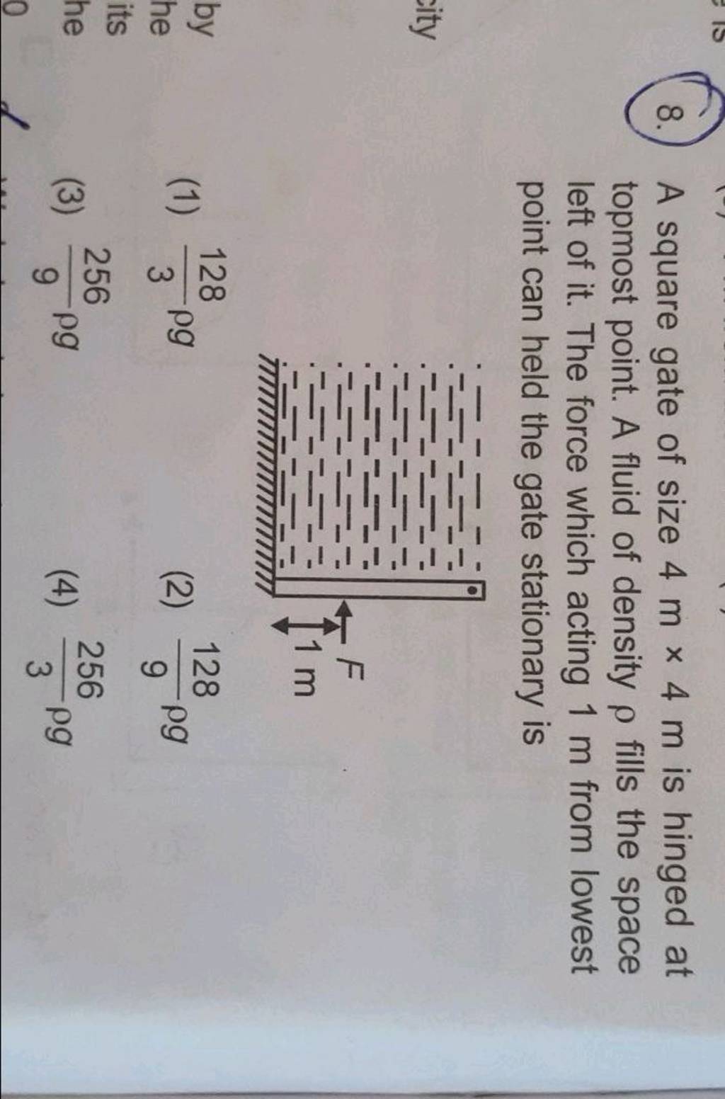 A square gate of size 4mathrm mimes4mathrm m is hinged at topmost point