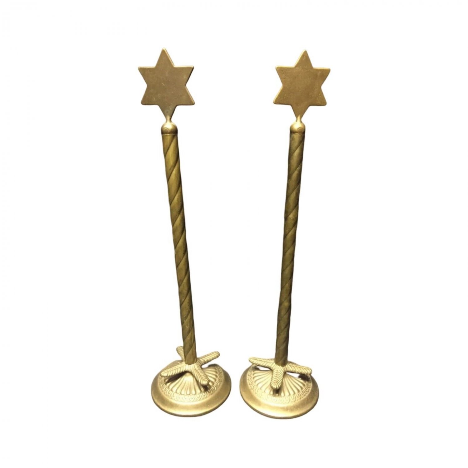 Antique Torah Holders Scrolls Pair Brass David Star Judaica 19th Century
