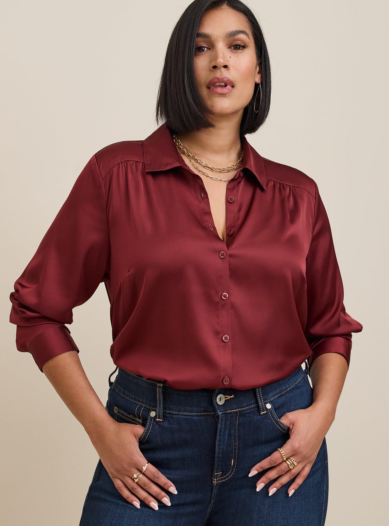 Plus Size Madison Satin Button Up Long Sleeve Shirt Torrid