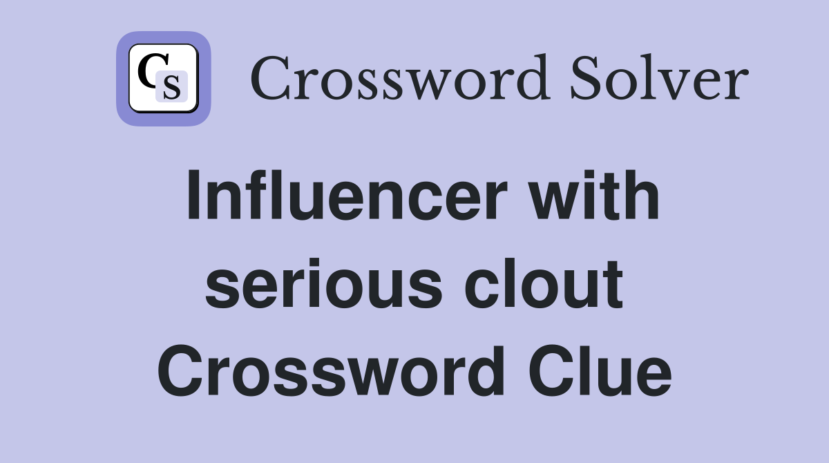Influencer with serious clout Crossword Clue Answers Crossword Solver