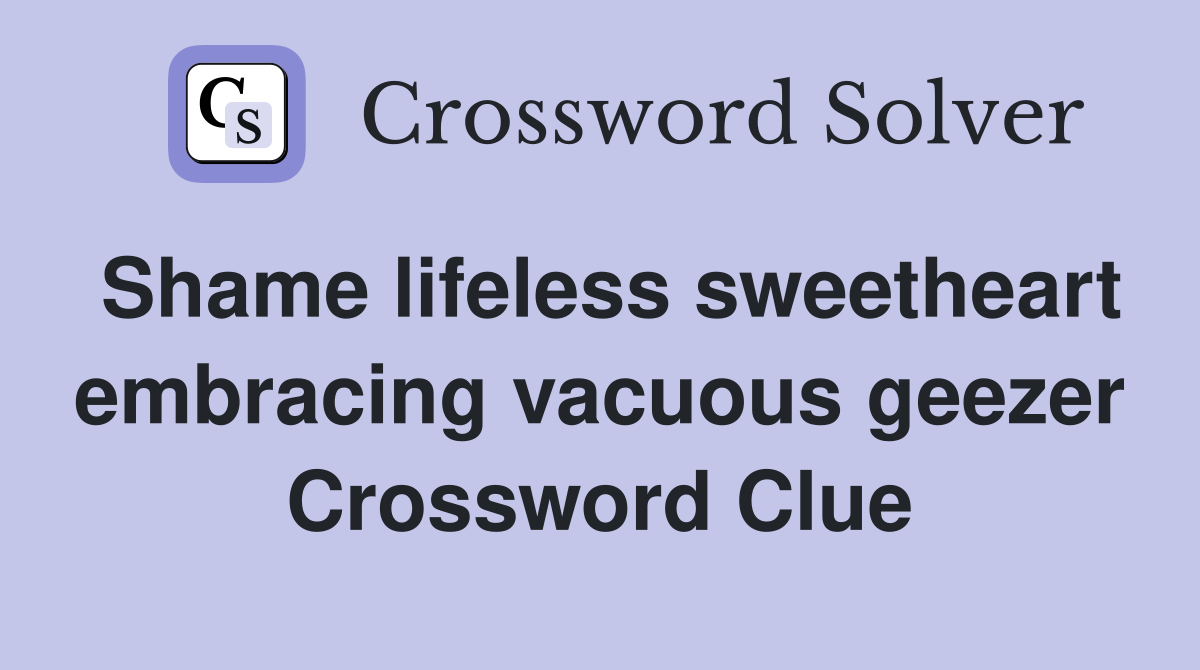 Shame lifeless sweetheart embracing vacuous geezer Crossword Clue