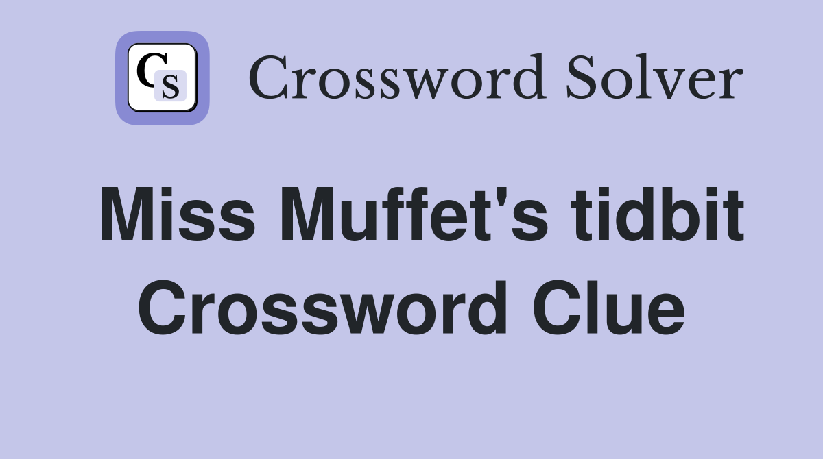Miss Muffet #39 s tidbit Crossword Clue Answers Crossword Solver