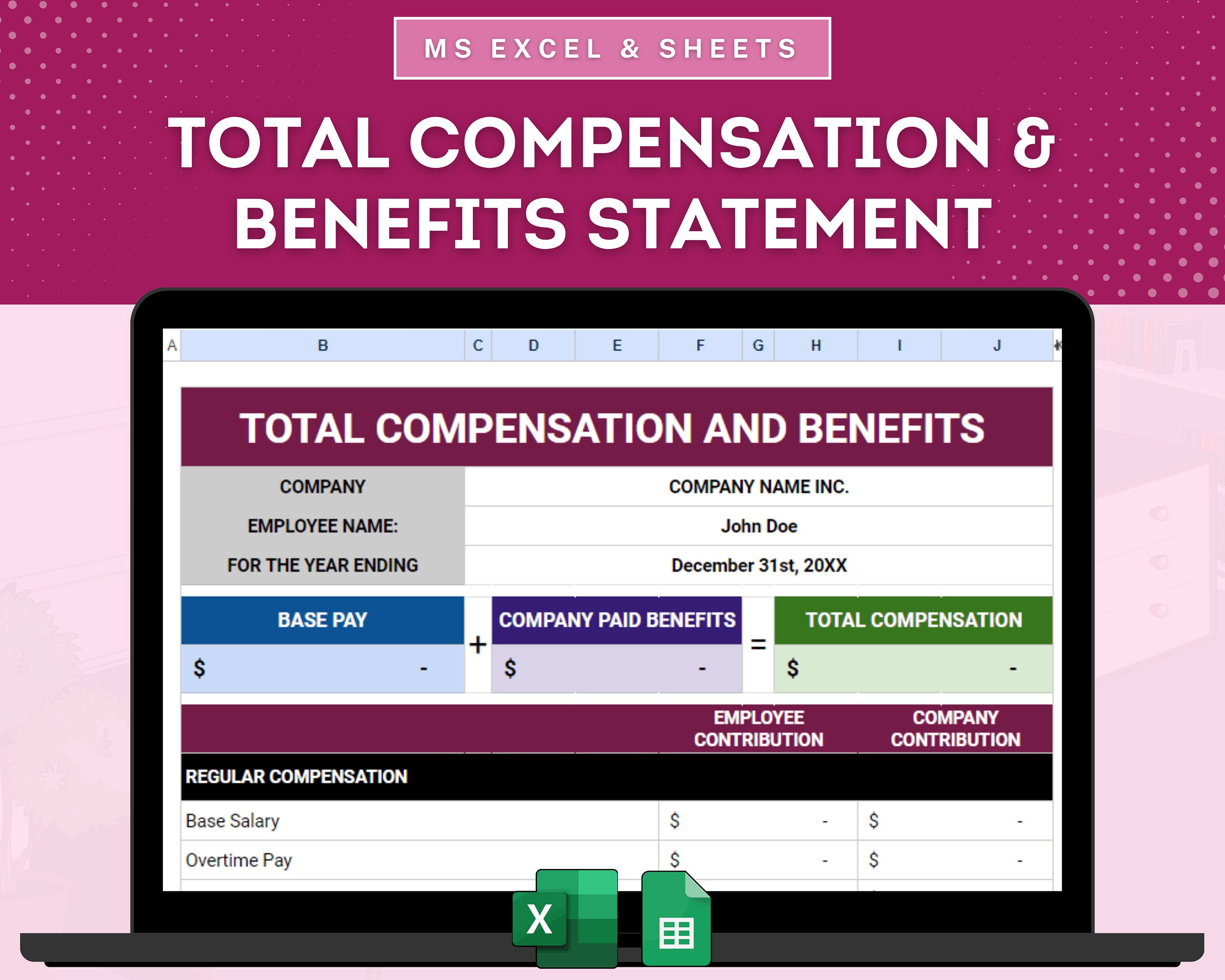 Total Compensation Statement Template: HR Employee Benefits (excel