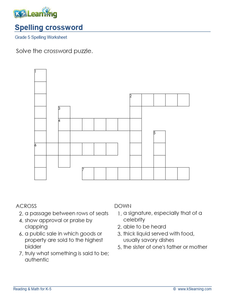 Grade 5 Crossword 1 Download Free PDF Puzzles Word Puzzles