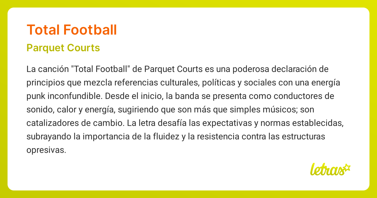 Significado de la canción TOTAL FOOTBALL (Parquet Courts) LETRAS COM