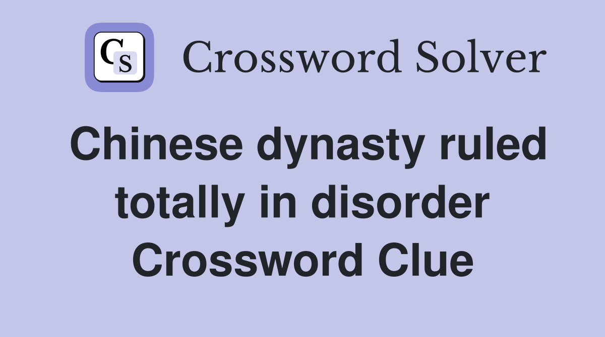 Chinese dynasty ruled totally in disorder Crossword Clue Answers