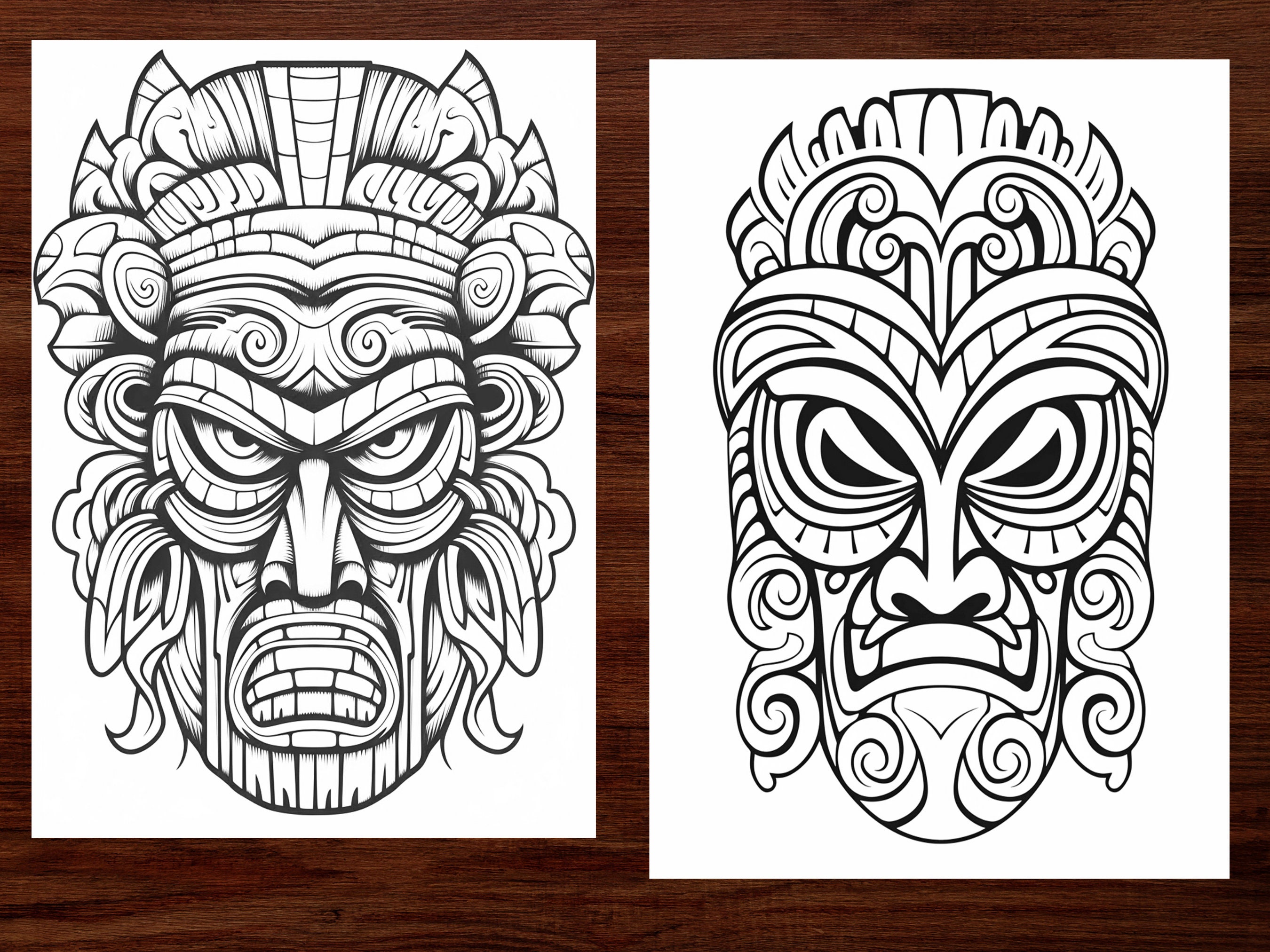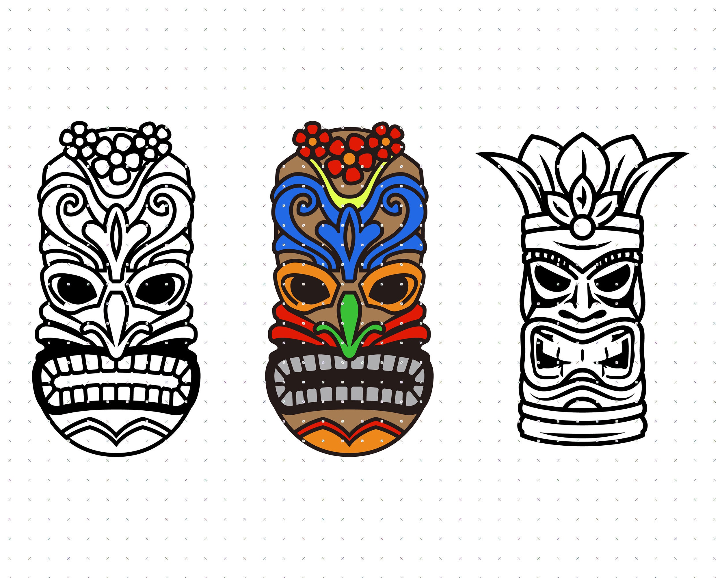 Polynesian Art Tiki Mask Coloring Page Tiki Tropical Coloring Etsy