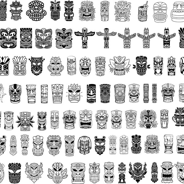 Tiki Mask Outline Patterns: DFX EPS PDF PNG and SVG Cut Files
