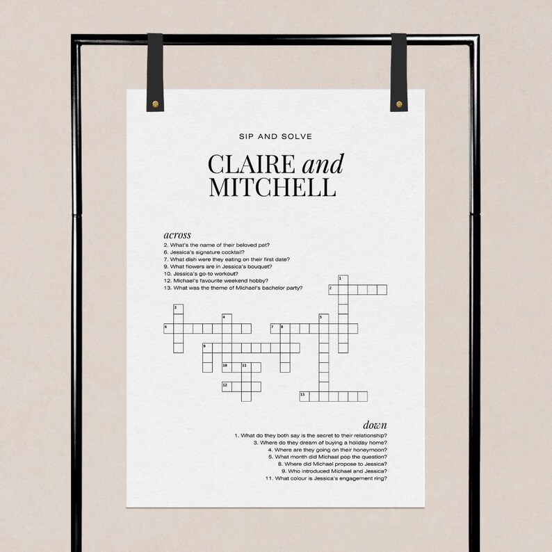 Wedding Crossword Puzzle Template Sip and Solve Wedding Game Custom