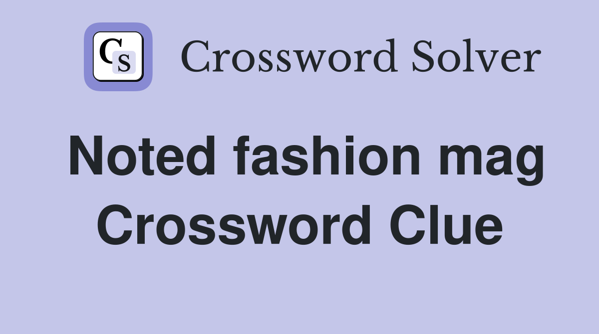 Noted fashion mag Crossword Clue Answers Crossword Solver