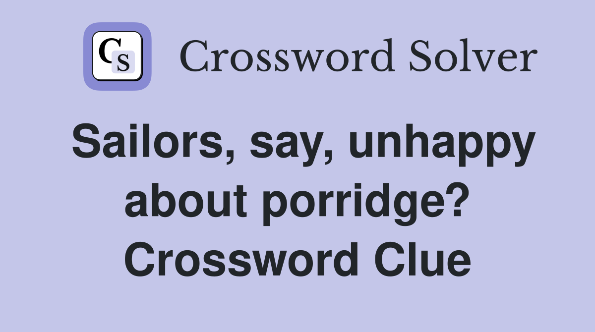 Sailors say unhappy about porridge? Crossword Clue Answers