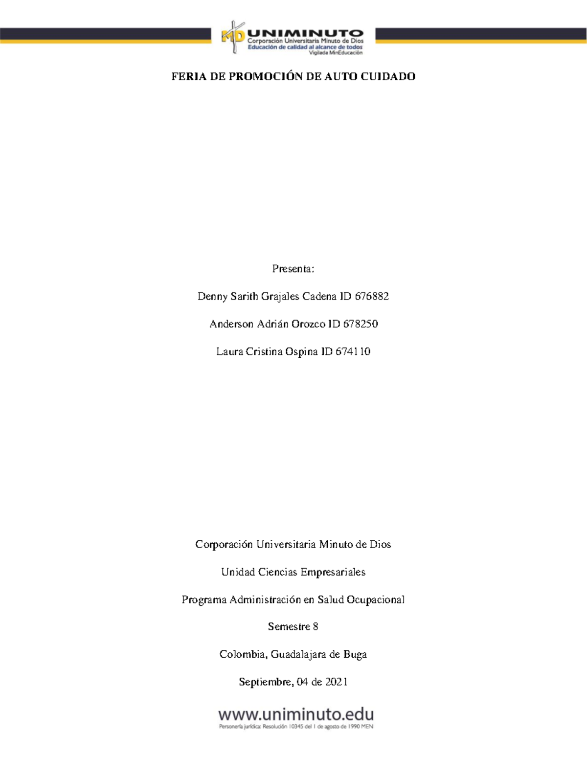 Autocuidado Planificación y control operacional La organización debe