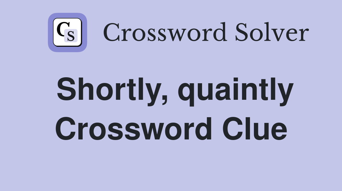Shortly quaintly Crossword Clue Answers Crossword Solver