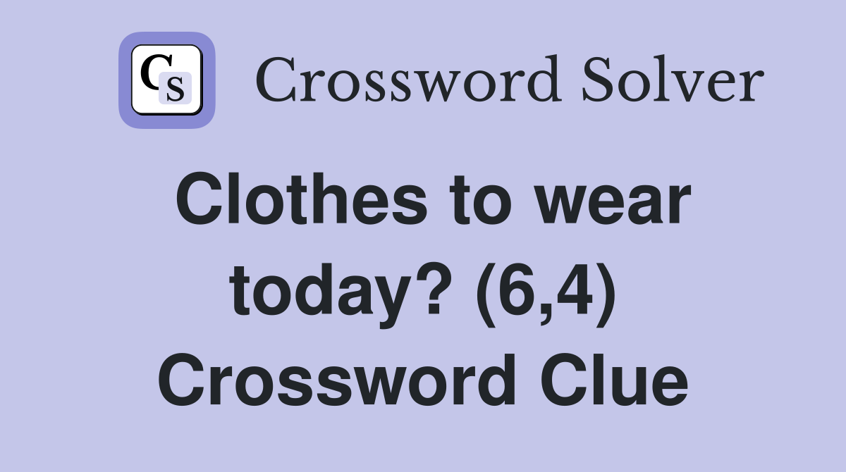 Clothes to wear today? (6 4) Crossword Clue Answers Crossword Solver
