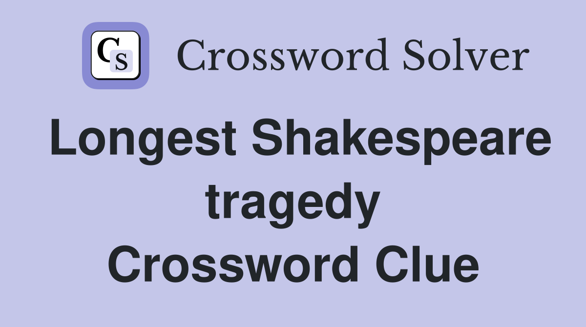 Longest Shakespeare tragedy Crossword Clue Answers Crossword Solver
