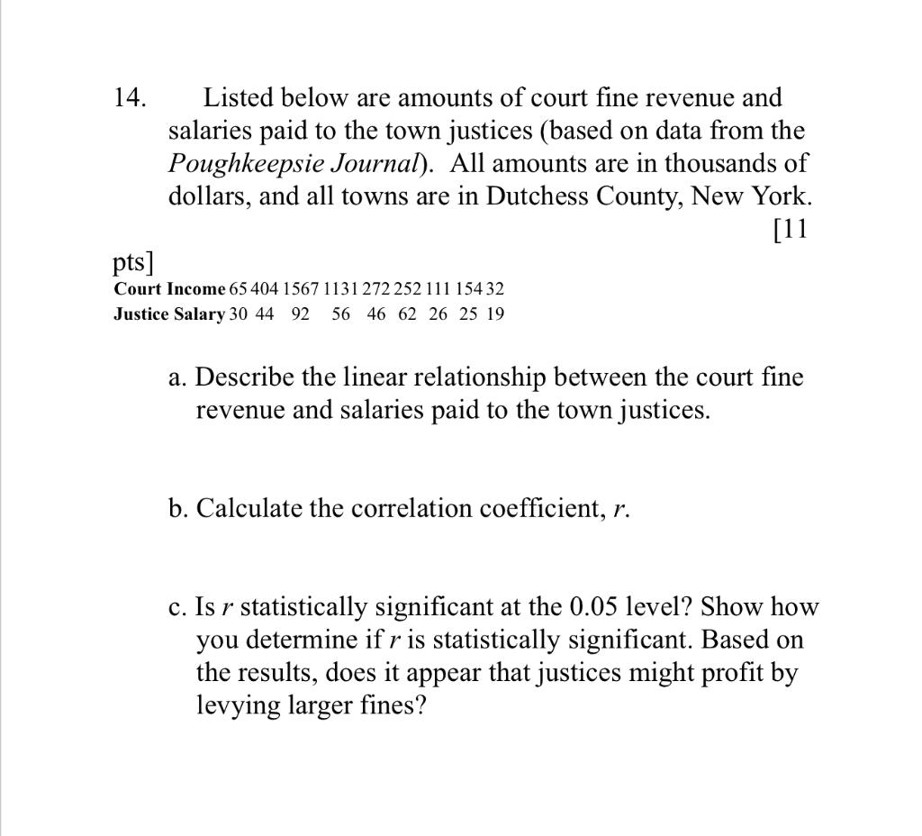 Solved 14 Listed below are amounts of court fine revenue Chegg com
