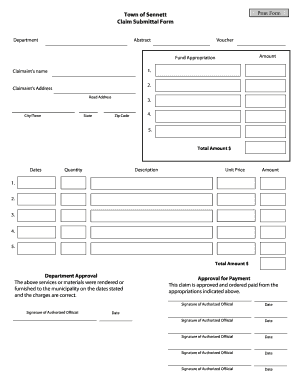 Fillable Online Town of Sennett Claim Submittal Form Cayuga County
