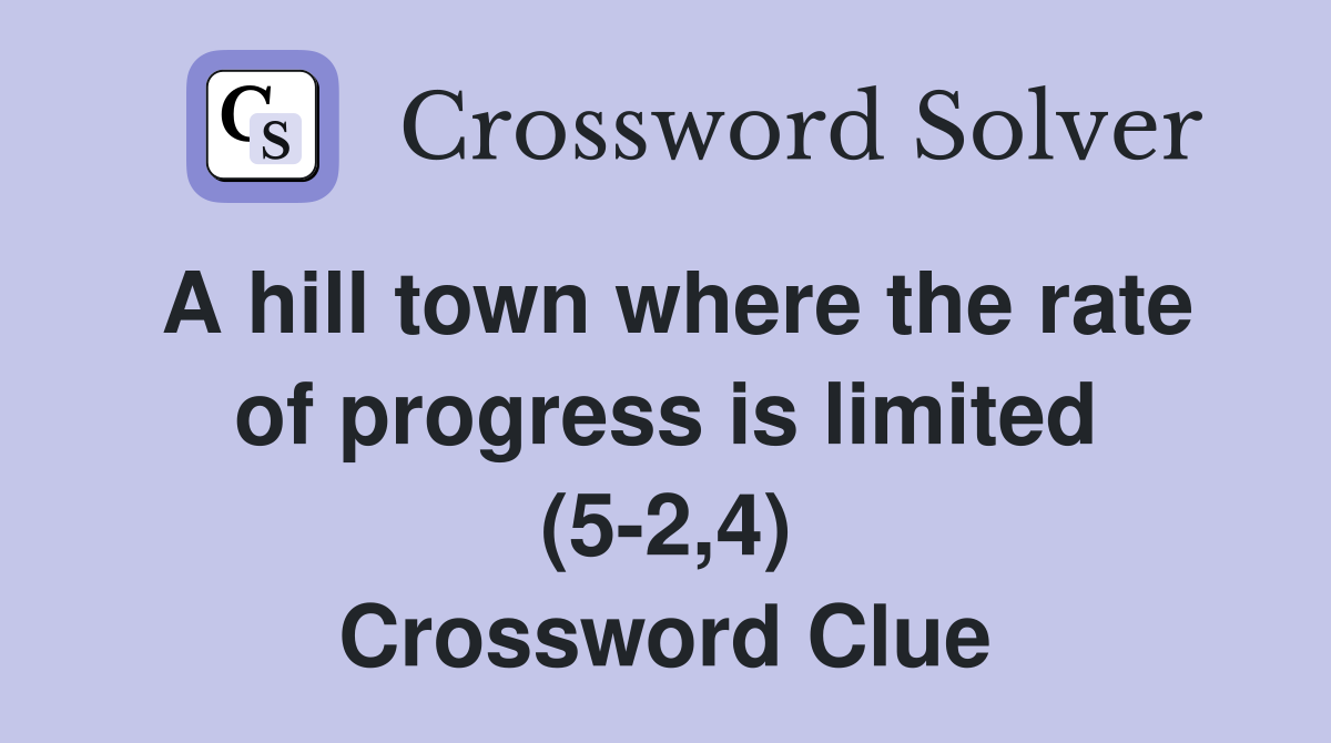 A hill town where the rate of progress is limited (5 2 4) Crossword