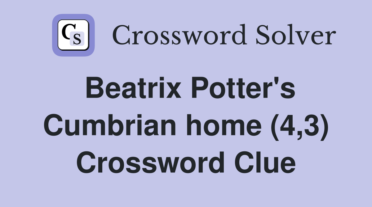 Beatrix Potter #39 s Cumbrian home (4 3) Crossword Clue Answers