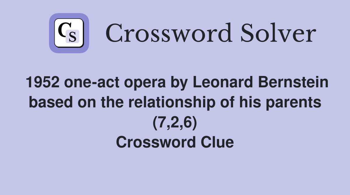 1952 one act opera by Leonard Bernstein based on the relationship of