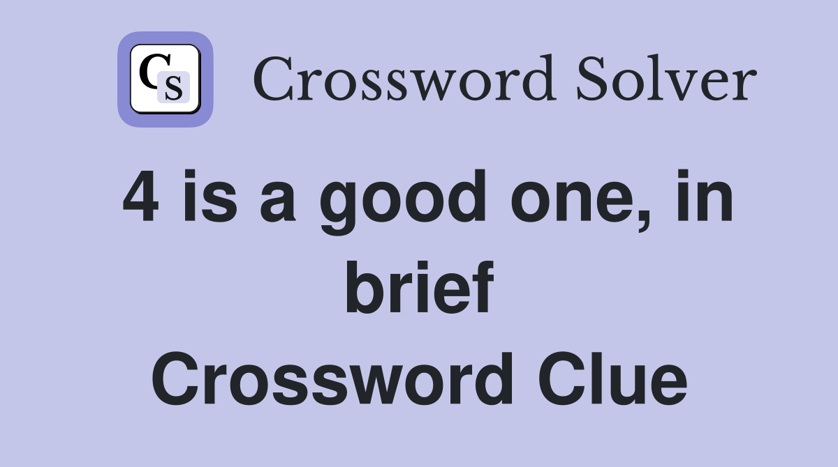 4 is a good one in brief Crossword Clue Answers Crossword Solver