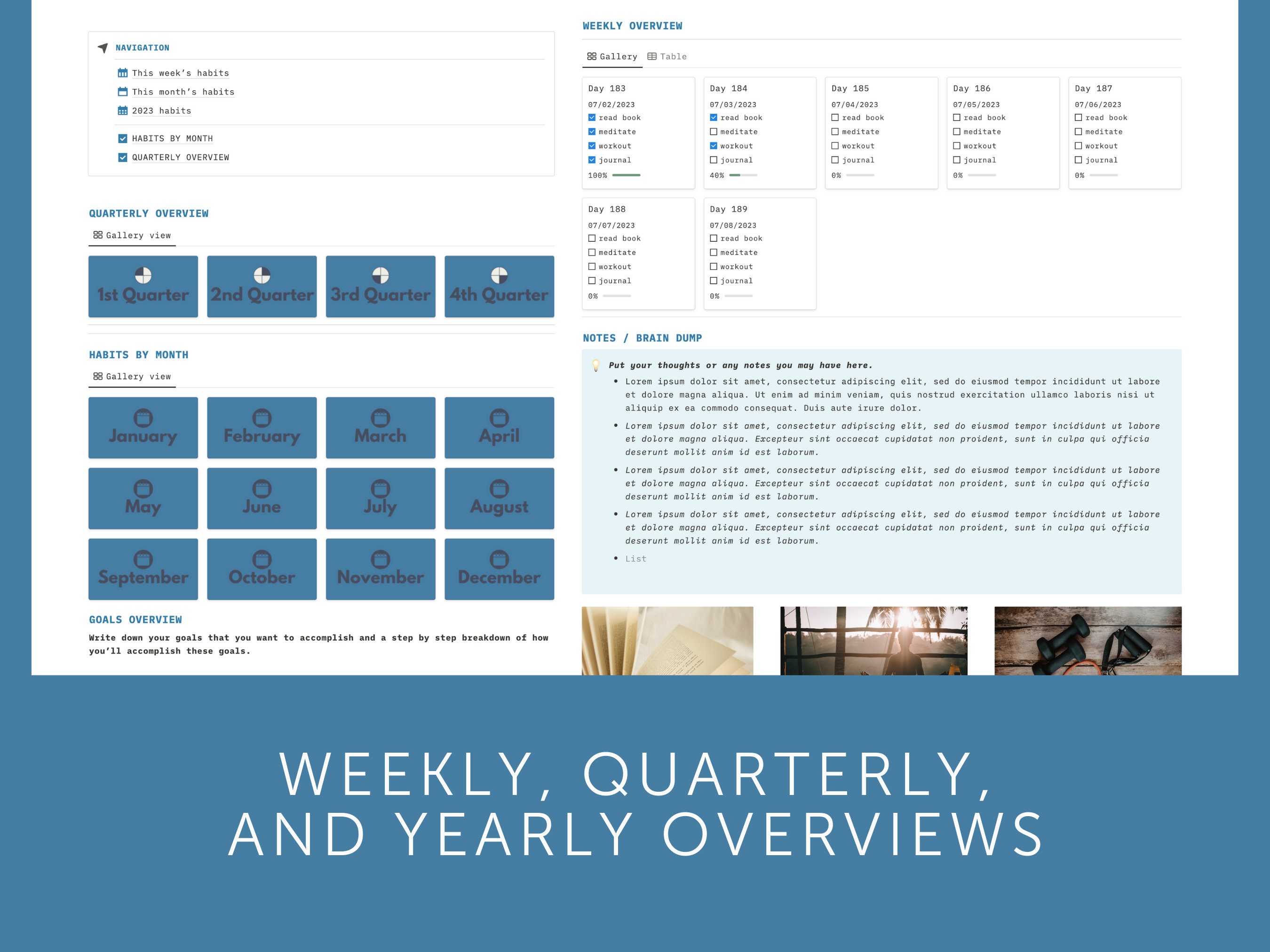 Notion Habit Tracker Template Checklists With Weekly Quarterly and