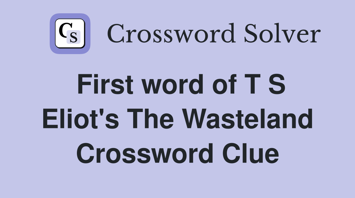 First word of T S Eliot #39 s The Wasteland Crossword Clue Answers