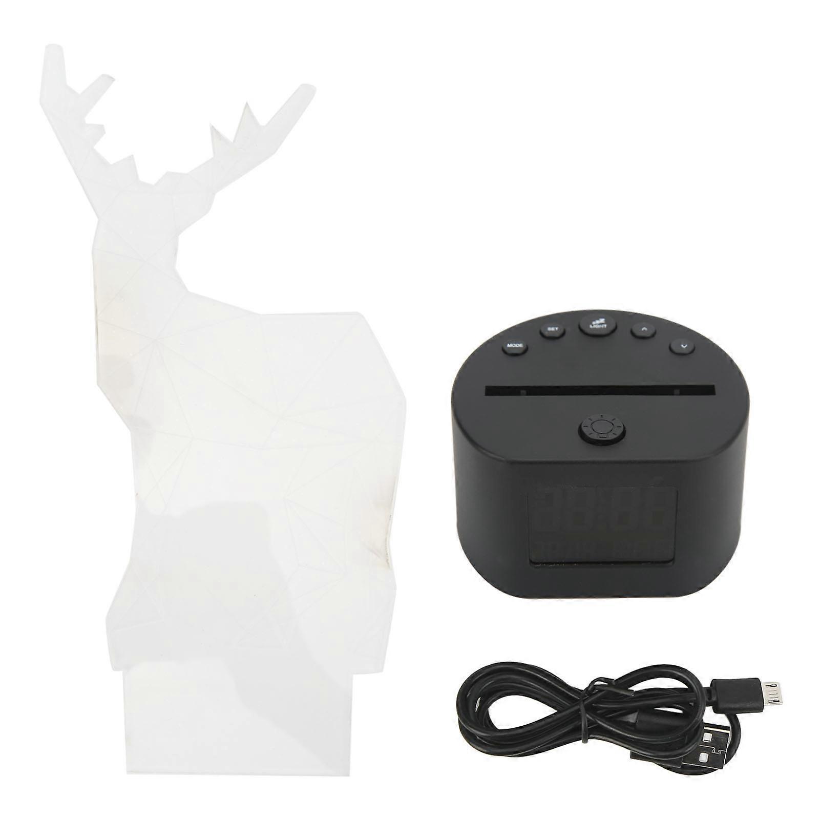 Digital Clock Perpetual Calendar LED RGB Black Base Deer Style Dual