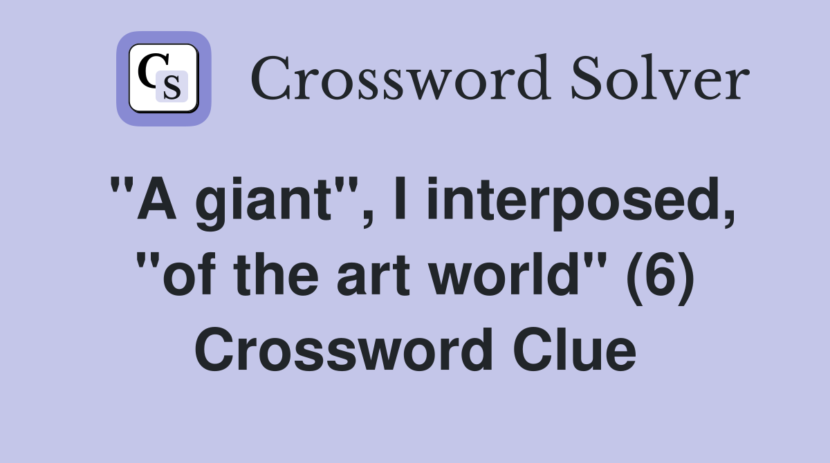 quot A giant quot I interposed quot of the art world quot (6) Crossword Clue