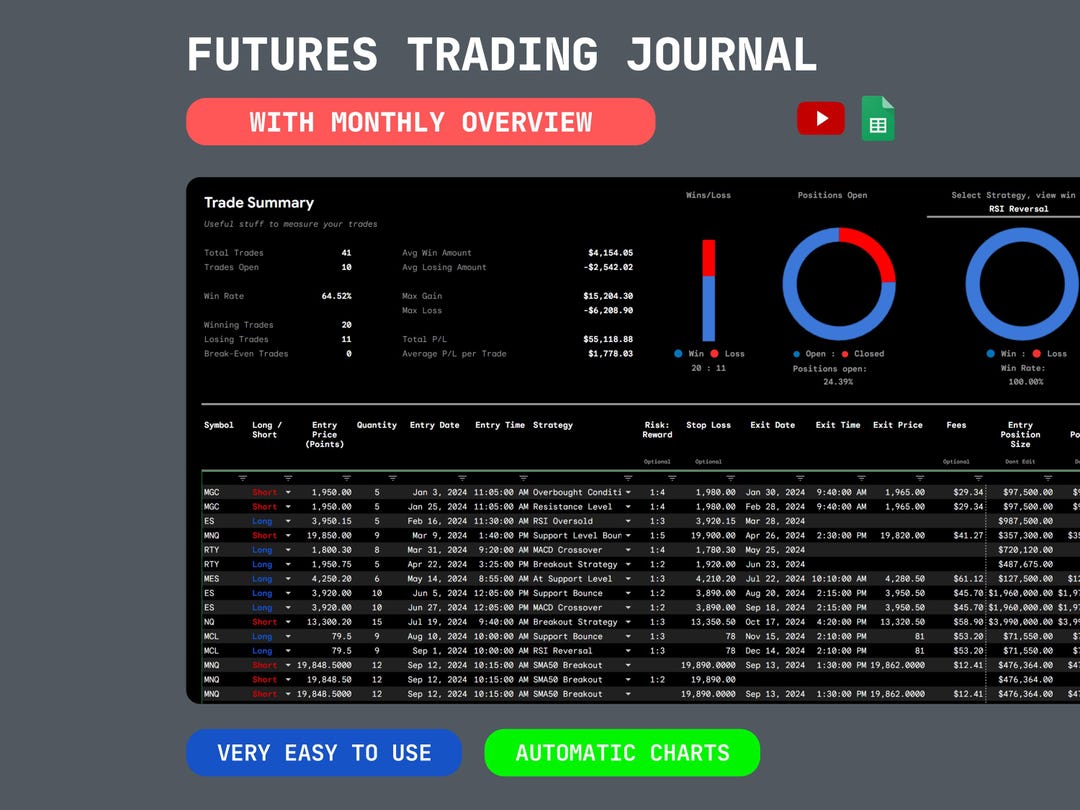 Futures Trading Journal Spreadsheet Google Sheets Trading Planner