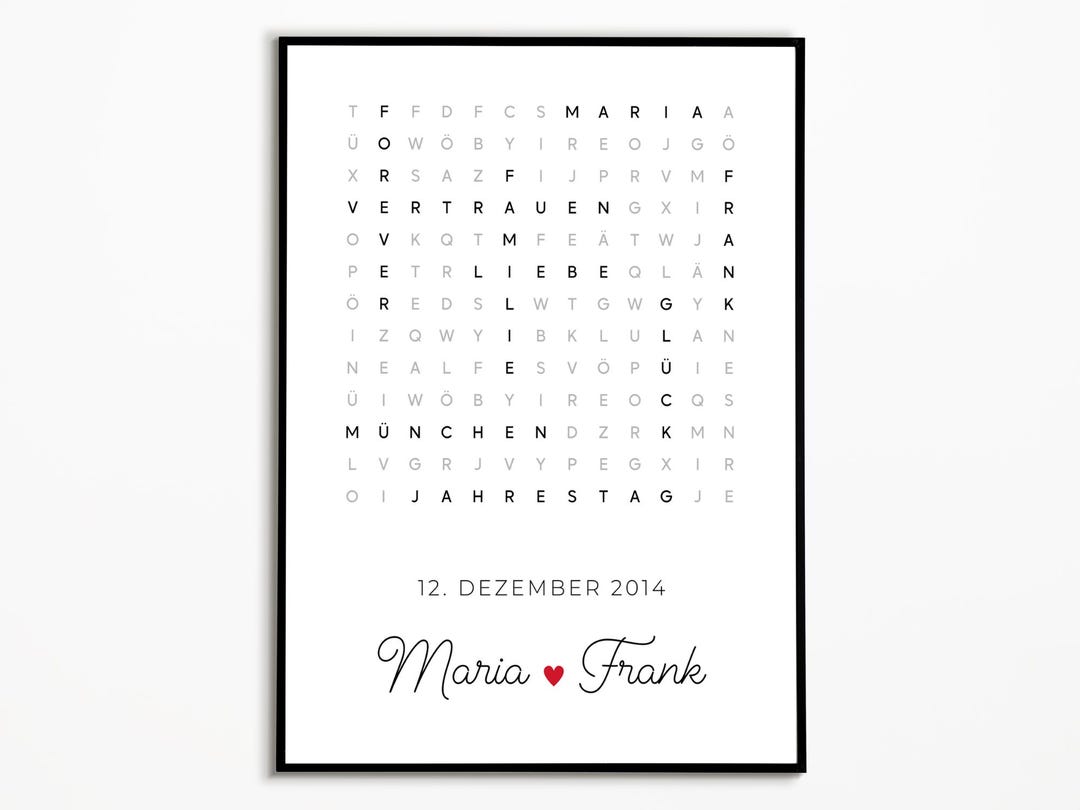 Anniversary Gift Crossword Puzzle Personalizable Creative and Special
