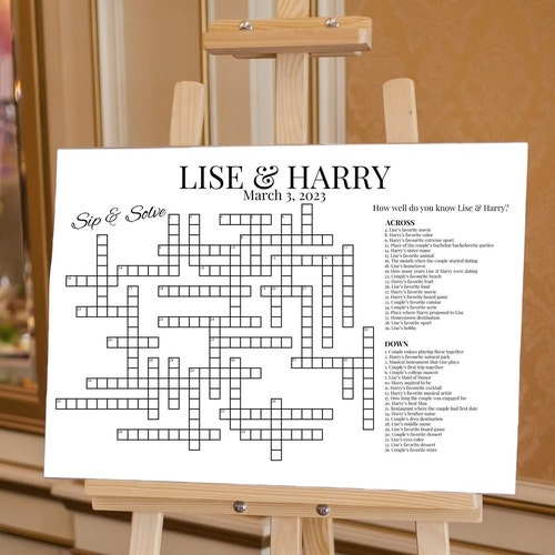 Custom Wedding Crossword Sip and Solve Puzzle Wedding Games Etsy Canada