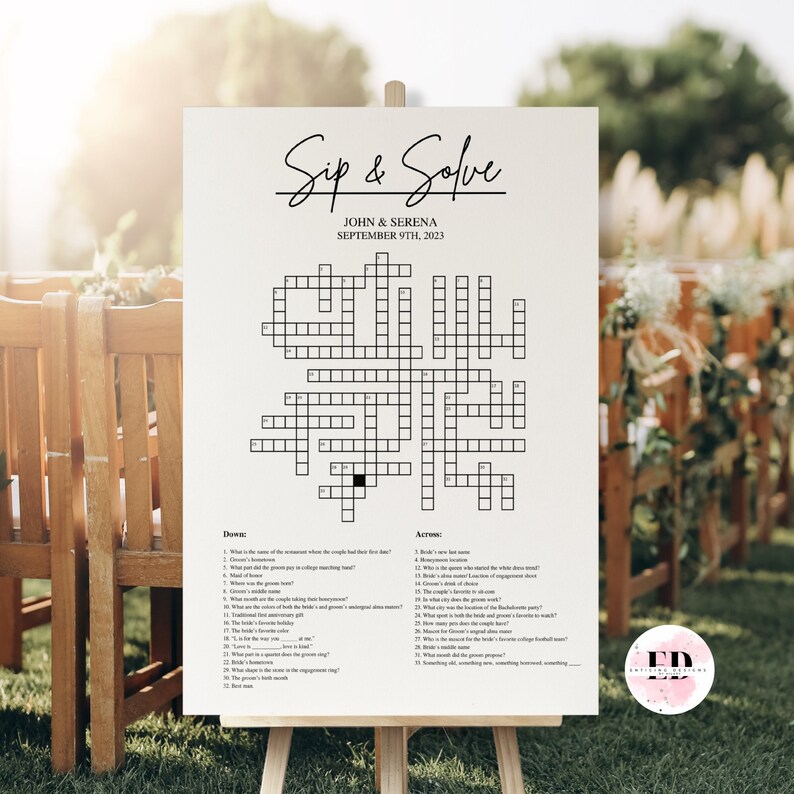 Custom Minimalist Wedding Crossword Sip and Solve Puzzle Sip Etsy
