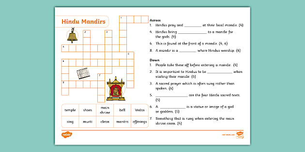 KS1 Hindu Mandir Crossword KS1 (Lehrer gemacht) Twinkl
