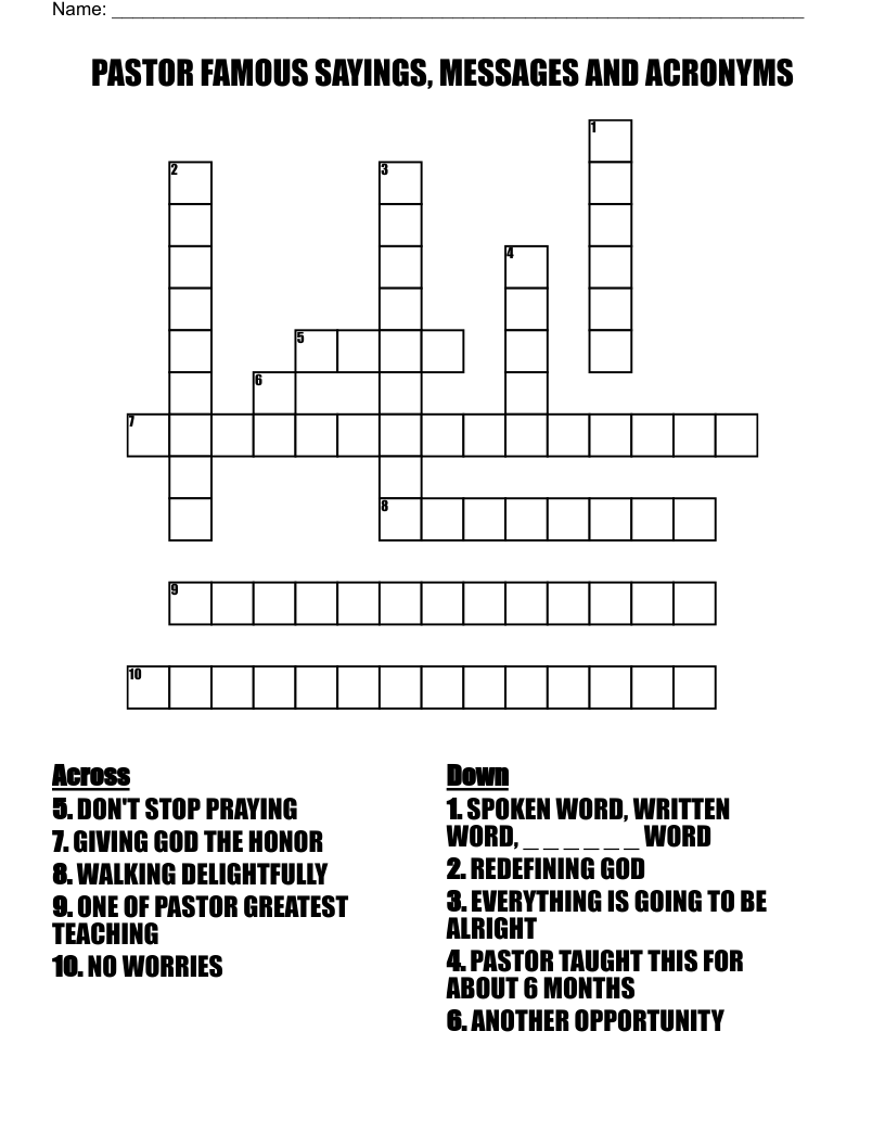 PASTOR FAMOUS SAYINGS MESSAGES AND ACRONYMS Crossword WordMint