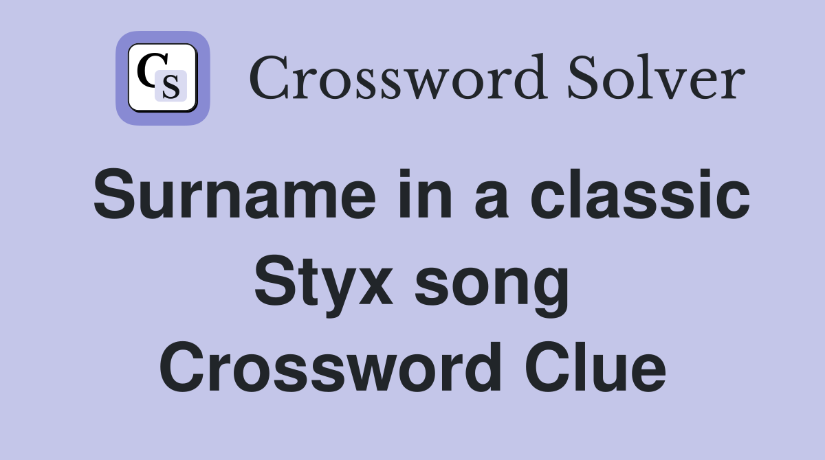 Surname in a classic Styx song Crossword Clue Answers Crossword Solver