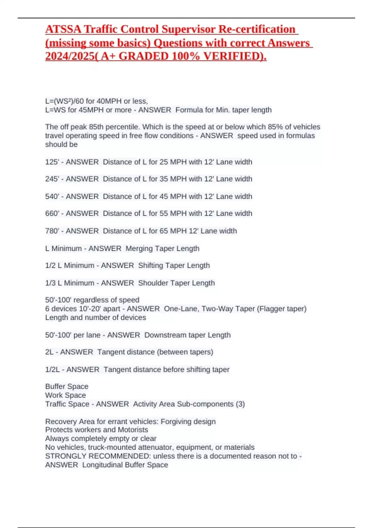 ATSSA TRAFFIC CONTROL SUPERVISOR RE CERTIFICATION EXAM 2025 BRAND NEW