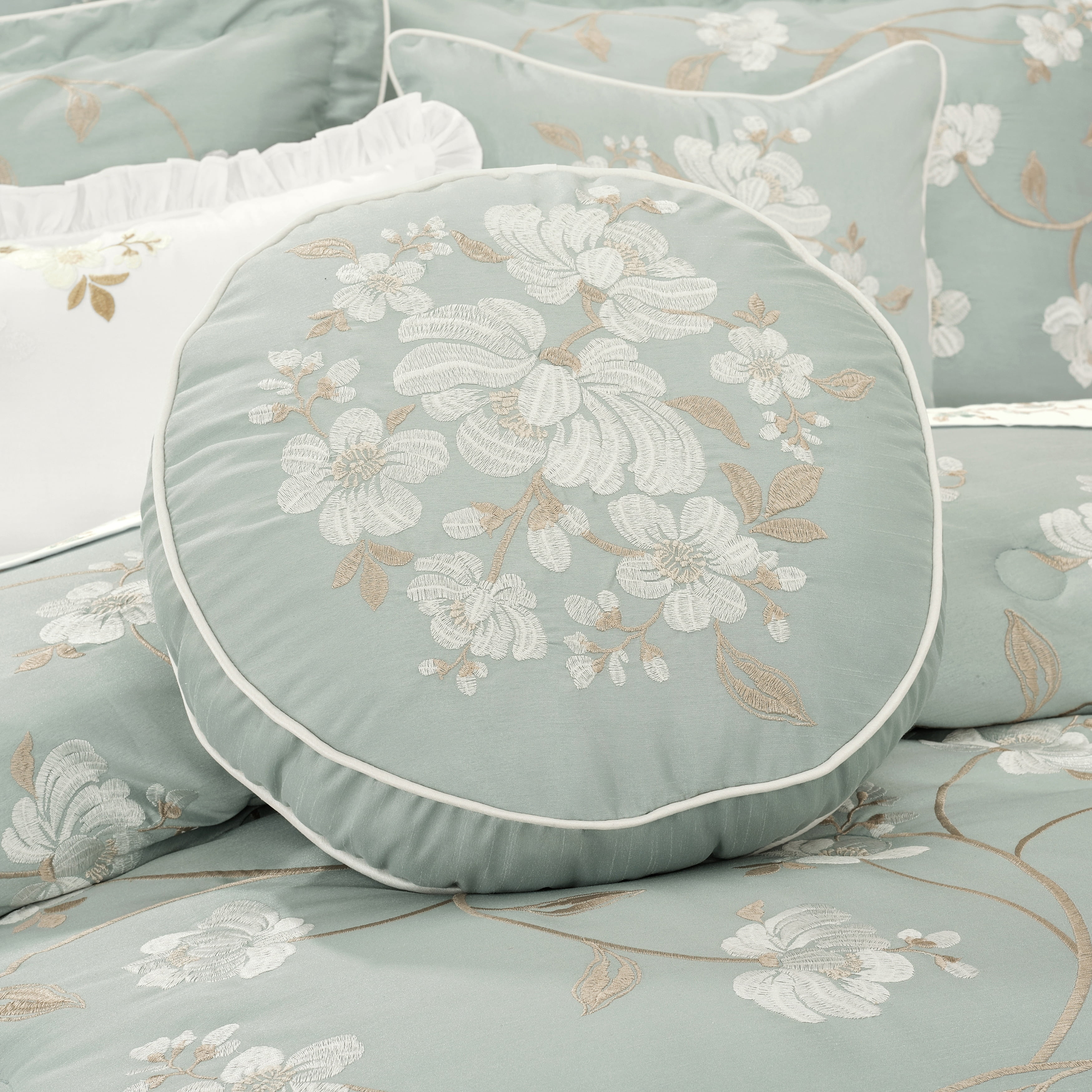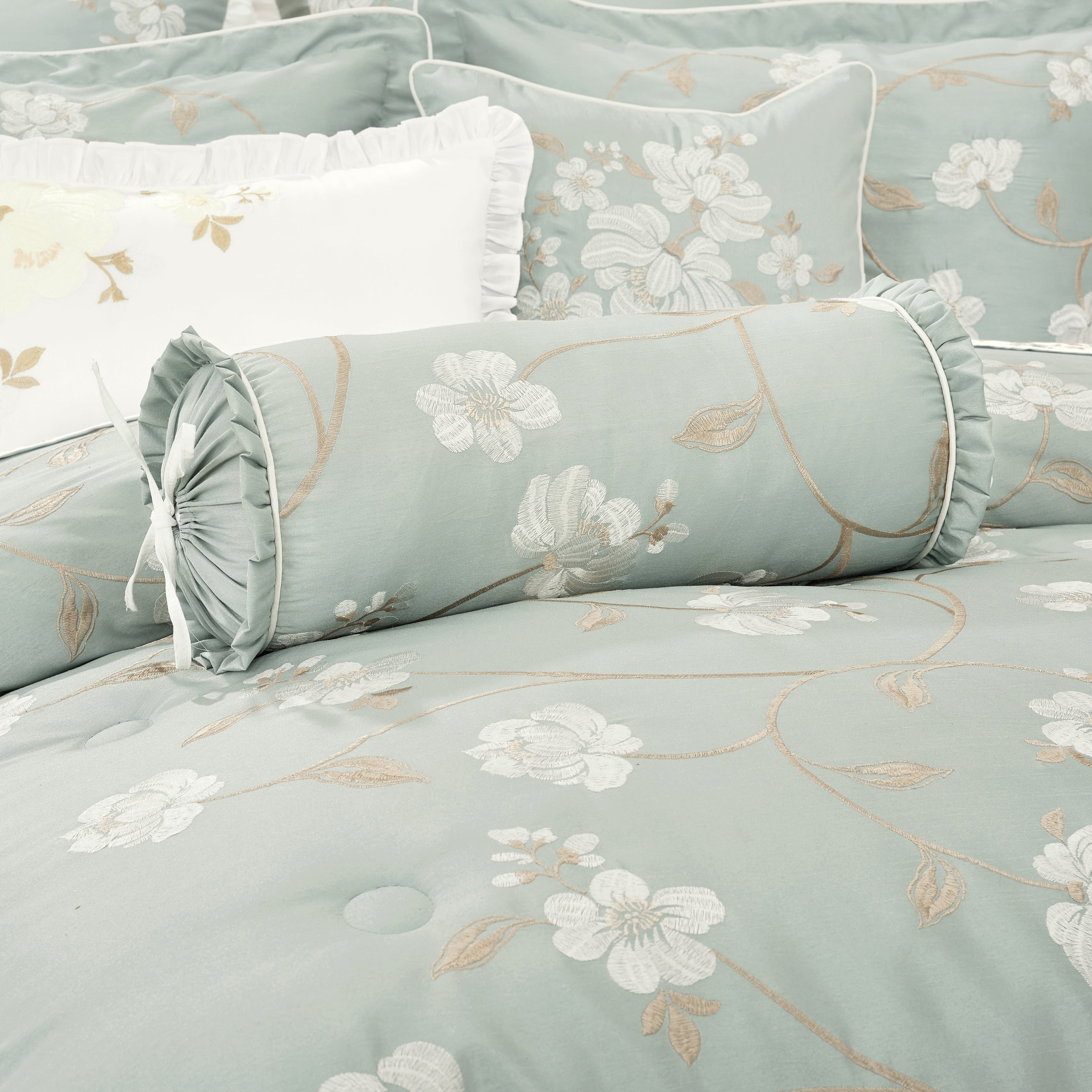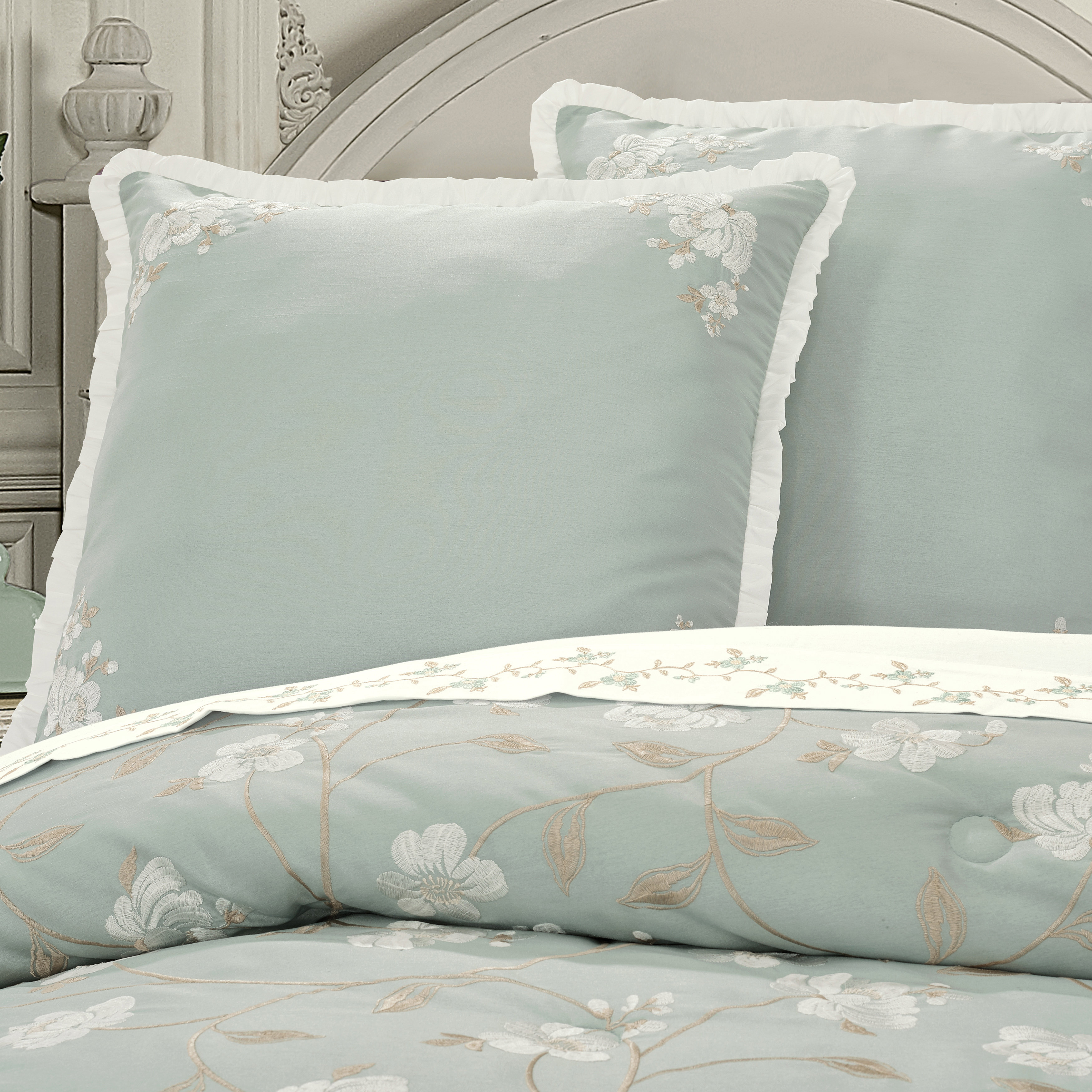 Spring Garden Aqua Mist Embroidered Floral Comforter Bedding by Royal Court