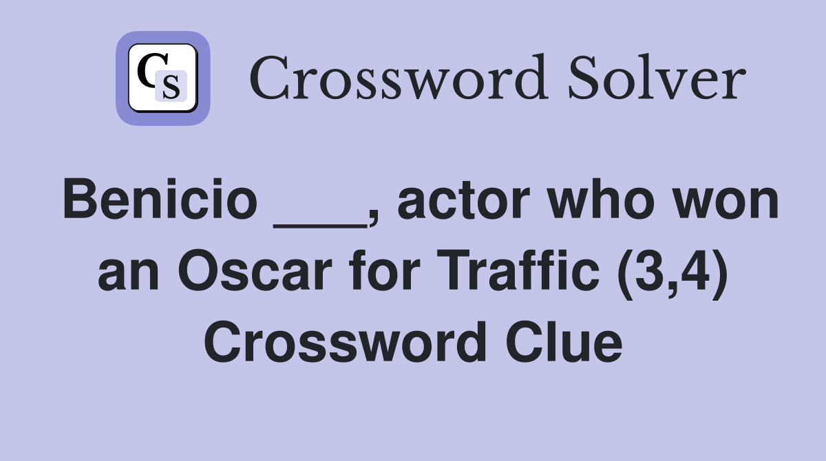 Benicio actor who won an Oscar for Traffic (3 4) Crossword Clue