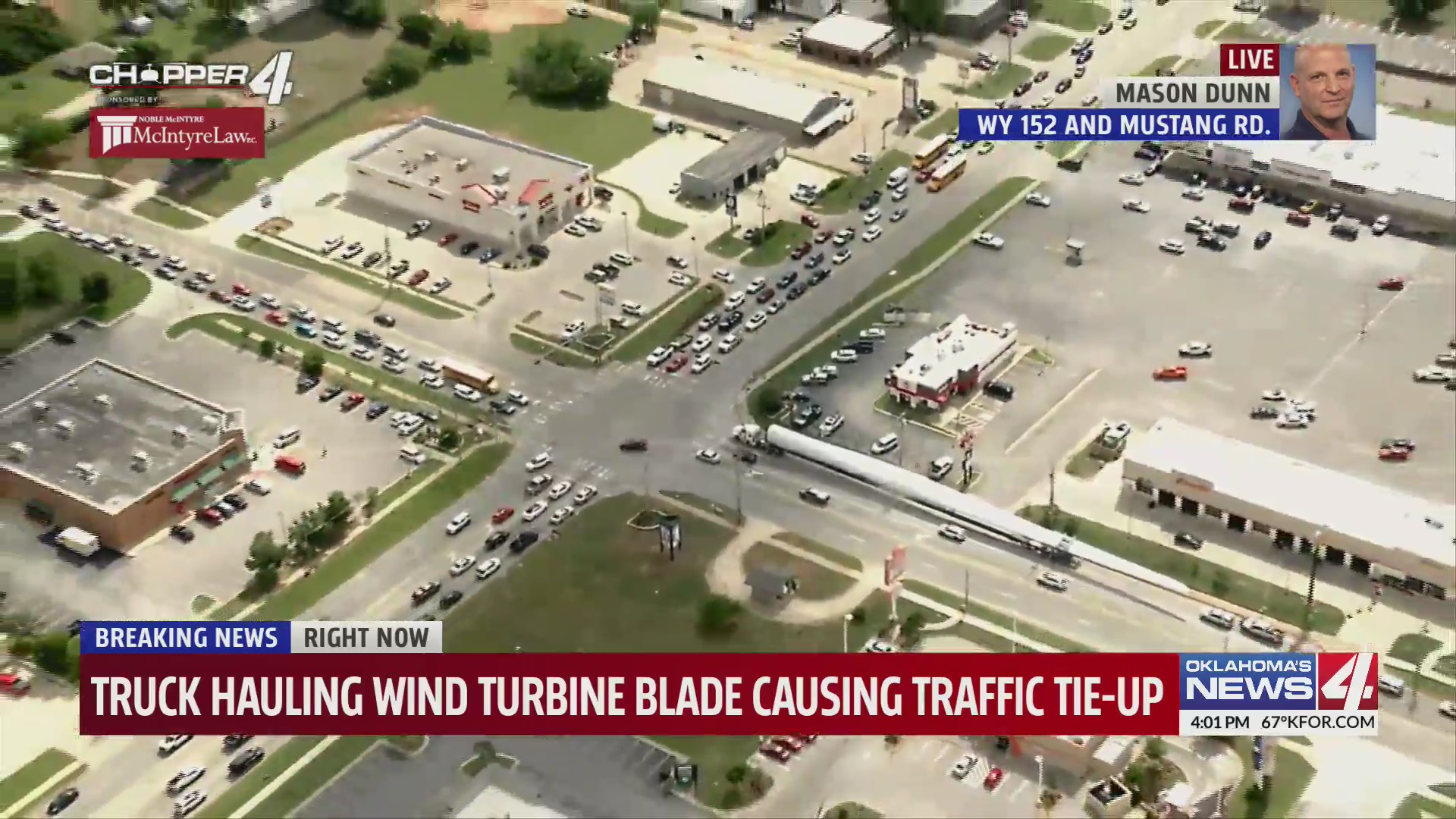 Truck hauling wind turbine blade causing traffic tie up KFOR com