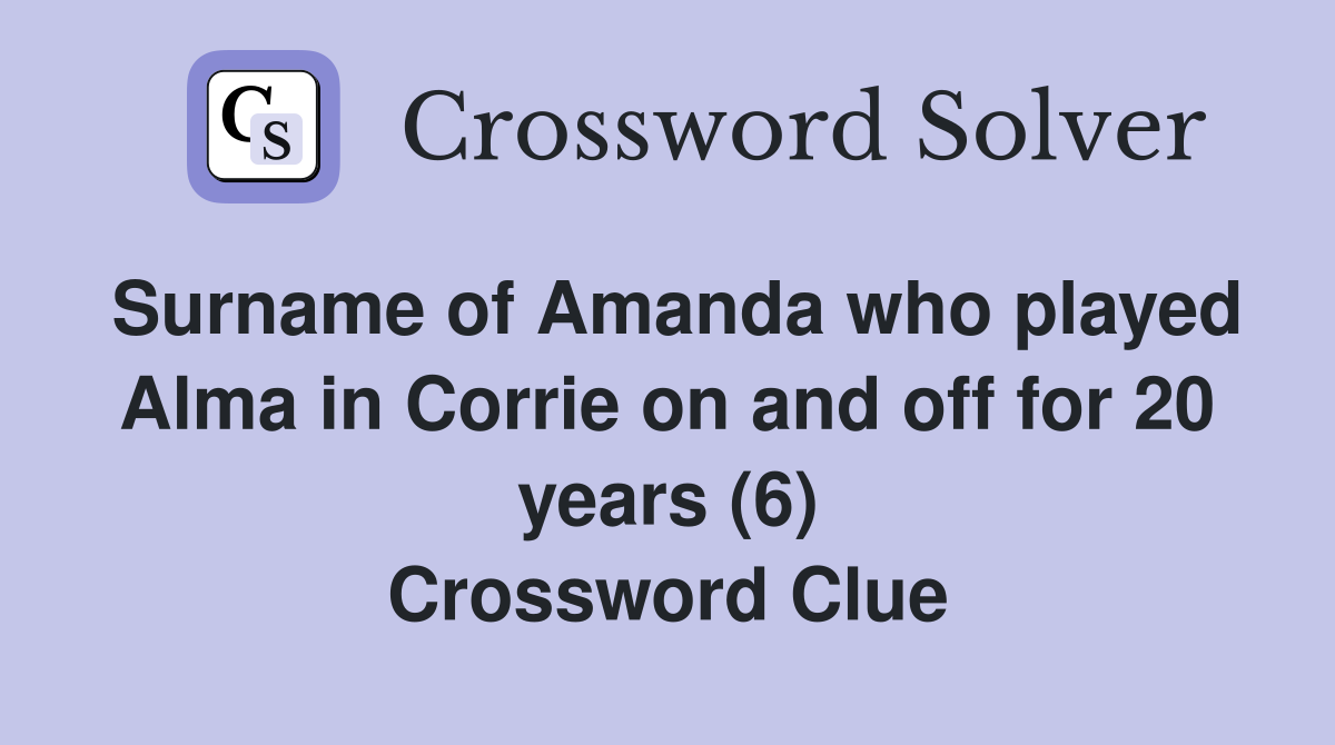 Surname of Amanda who played Alma in Corrie on and off for 20 years (6